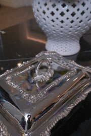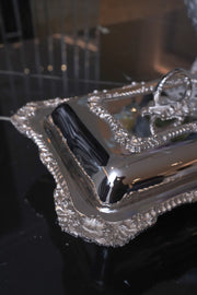 Elevate your dining experience with our Handmade Silver Serving Dish. Crafted with meticulous attention to detail, this exquisite piece combines functionality with elegance. The serving bowl is made from high-quality stainless steel, ensuring durability and a luxurious look. The water compartment and stand feature a plated silver finish, adding a touch of sophistication to your table setting. The lid, crafted from brass and plated for a polished finish, completes the ensemble, making it a must-have for formal gatherings or special occasions.