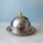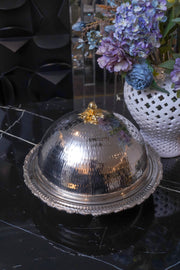 Crafted with high-quality stainless steel, the (Hand-Made) Metal Serving Platter offers both style and functionality. The dome shape, along with its brass legs and knobs, adds a touch of luxury, making it perfect for entertaining guests. Its durable construction ensures long-lasting use, making it a must-have for any household.