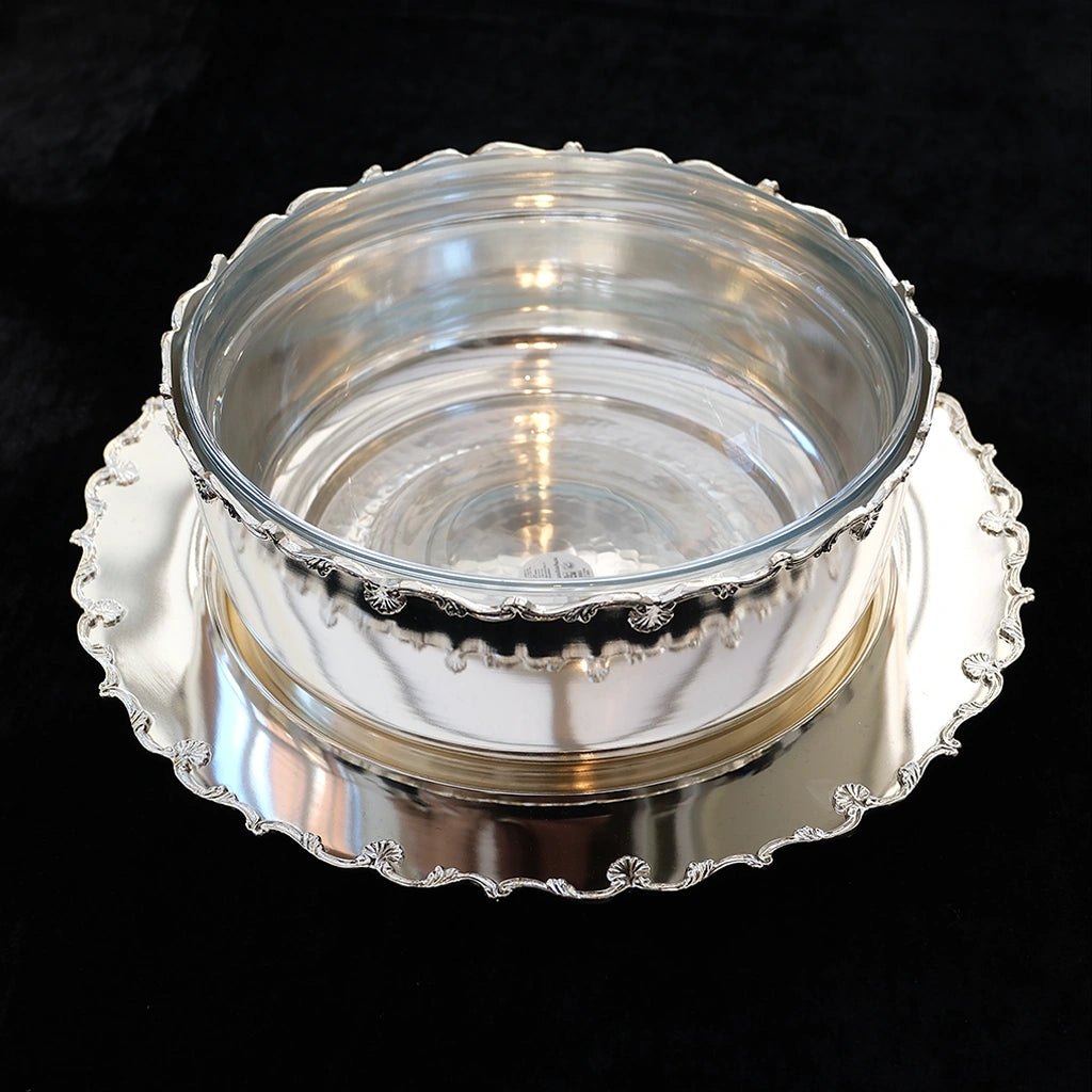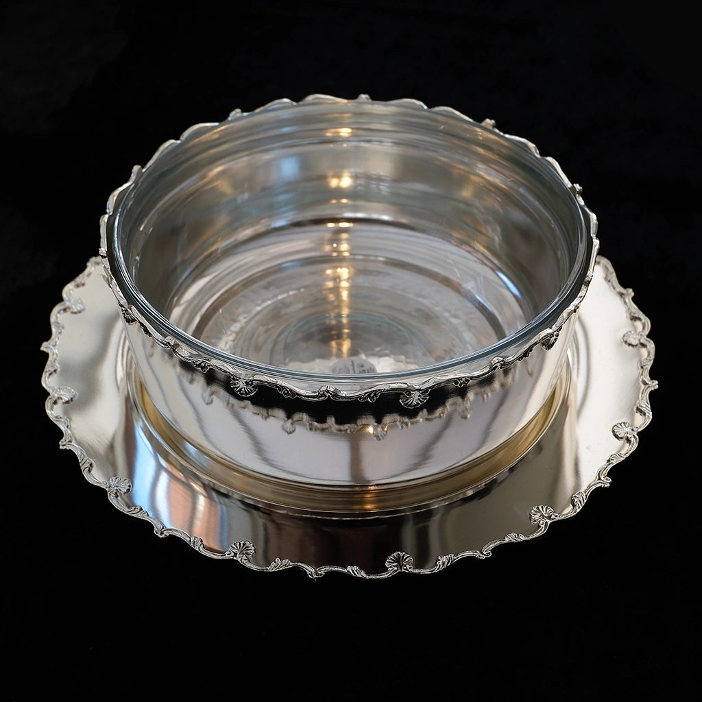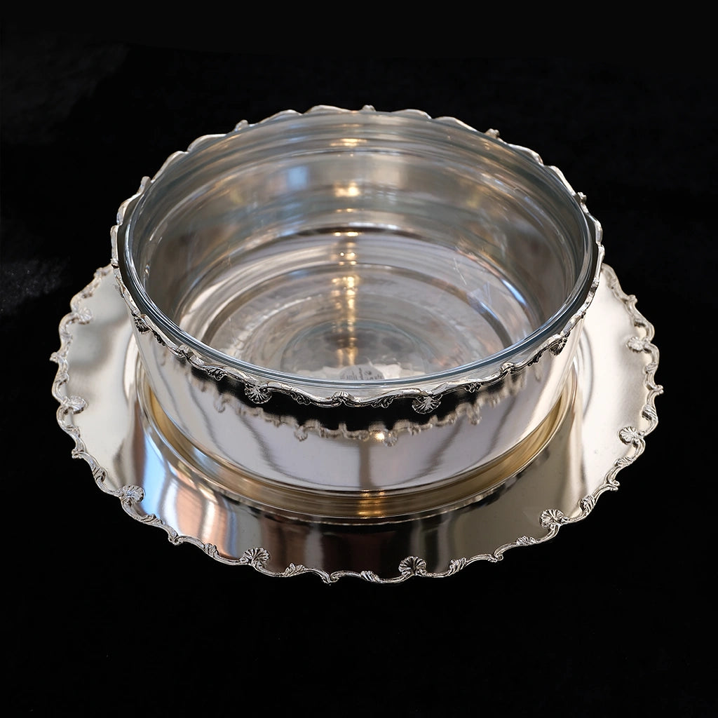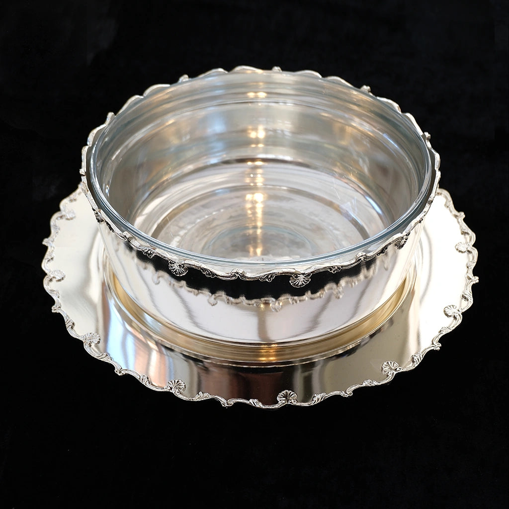 The Classic Silver Plated Scalloped Bowl with Glass Interior blends sophistication with everyday usability. From its shimmer to its graceful scalloped edges, every detail is designed to make your table feel beautifully curated.