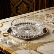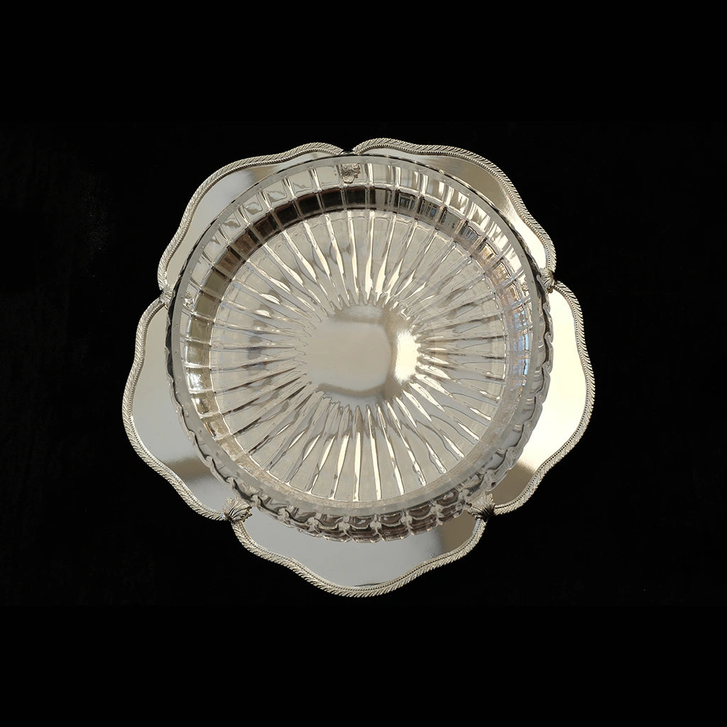 The Silver Round Scalloped Server with Glass Bowl is more than just a serving piece — it’s a statement of elegance. Its shimmering glass bowl and graceful scalloped base make every presentation feel special, turning simple servings into moments of refined beauty.